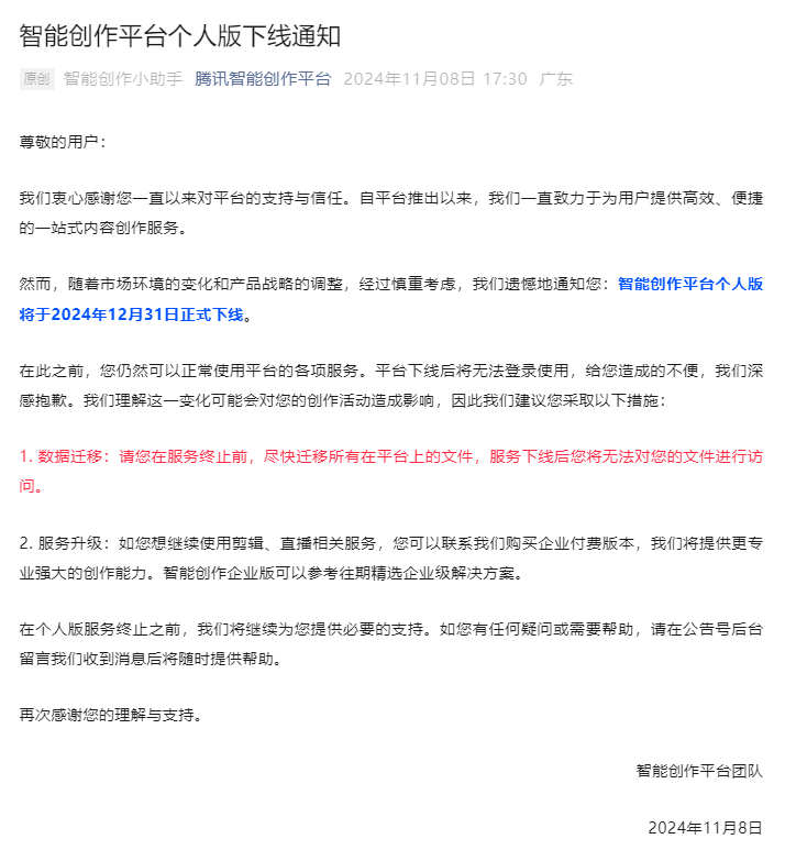 The personal version of vtencent has been officially offline on December 31, 2024.